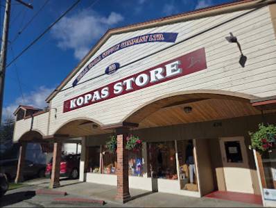 Le 'Kopas Store' est une épicerie localisée dans la ville de Bella Coola, au Canada. Ce magasin propose une variété de produits, y compris des articles souvenir, des vêtements, des bijoux, des articles de cuisine et bien plus encore. Le personnel est également très accueillant et serviable, prêt à discuter avec les clients sur des sujets tels que la famille et la vie dans le nord.